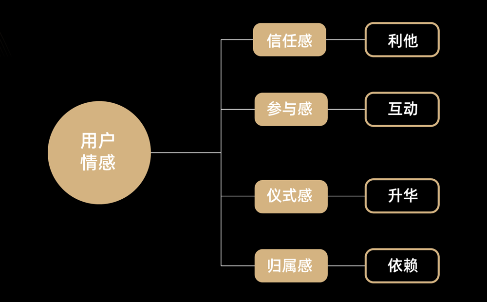 用户情感分为信任感、参与感、仪式感、归属感,他们分别可以通过利他、互动、升华、依赖四种方式获得。像之前爆火的东方甄选和刘耕宏两大直播间。都因为击中了用户的情感需求,获得了巨大的成功。